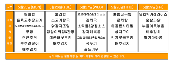 실습생실 이동 및 정리까지 끝난 후에는 점심 급식을 먹었다. 교생들의 점심 급식은 학생들이 아직 등교하지 않은 1학년 교실에서 이루어졌다. 작년과 같았으면 식당에서 학생들과 함께 점심 급식을 먹었겠지만, 코로나19로 인해 밥을 먹는 순간마저도 학생들과 만날 일이 없었다. 심지어 학생들이 급식을 먹는 것도 2층, 교생들이 급식을 먹는 것도 2층이었는데, 2층에서 학생들과 마주치는 것을 방지하기 위해 교생들은 중앙 계단을 통해 내려왔다가 다른 쪽 계단으로 다시 올라가 배식을 받아야 했다. 정말 불편했다.
