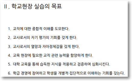 여기서 우리는 학교 현장실습이 어떤 활동인지 다시 한 번 살펴야 한다. 학교 현장실습은 학생들이 대학에서 배운 이론을 현장교육에 직접 적용하여 평가하고, 교과 수업 및 학급경영에 관한 실무적인 경험을 통하여 교사의 역할을 익히는 데 그 의의가 있다. 그리고 교직 관련 능력을 함양하게 할 뿐만 아니라, 학생들과 교감하는 경험을 통해 학생을 이해하는 기회를 갖는 것 역시 학교 현장실습의 목적이다.